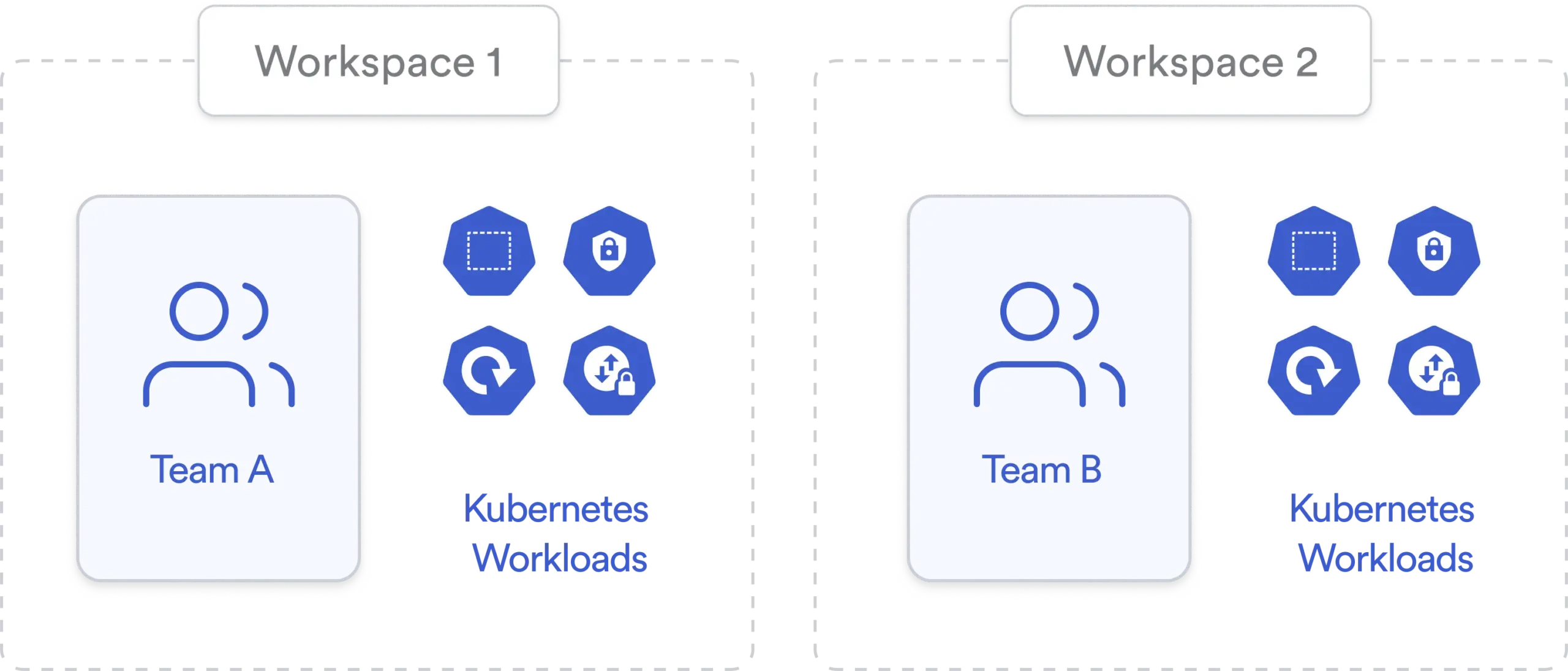 Organisieren Sie Ihre Teams in isolierten Workspaces mit zentraler Governance. Perfekt für Unternehmen mit mehreren Entwicklungseinheiten.